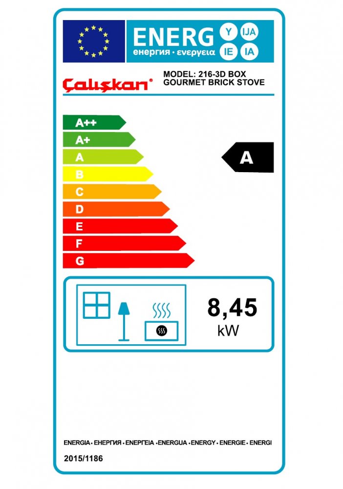 Sporák na tuhá paliva - jmenovitý výkon 8,45 kW, účinnost vytápění 84,35 %, energetická třída A+, Ekodesign 2022 Více